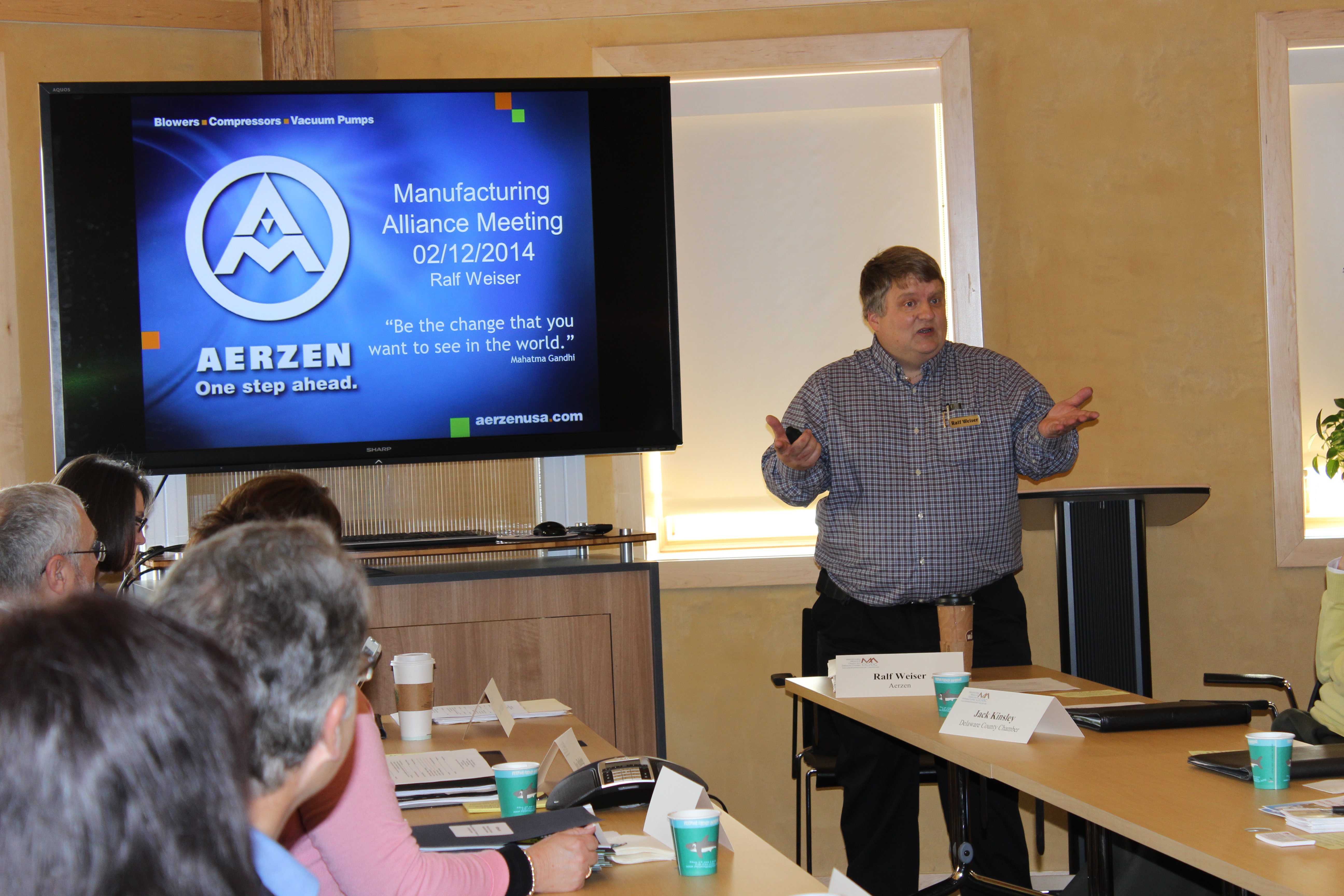 Photo depicts a business presentation held at the home base.